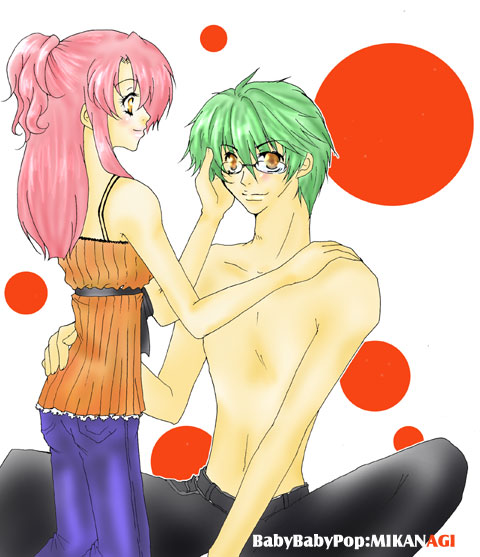 「へ…香穂ちゃんってコンタクトだったの?」 彼女の持ってきていた荷物から見える眼鏡ケースにひどく驚いた。 「ええ」 「初めて見た〜。眼鏡姿」 「あはは。高校入ってからはずっとコンタクトだから」 「貴重なもの、見れちゃったね、おれ」 「あははは。先輩は…裸眼?」 「おれ、両目2.0!」 「やっぱり!そうだと思った」 「ねえねえ香穂ちゃん、かけてみていい?」 「どうぞ」 ・ ・ ・ 「度が先輩には強いかもしれませんけど」 「どう?どう?」 「………」 「ど…どうしたの?似合わない?」 「…格好よすぎ」 「え?」 「先輩、格好よすぎです」 「本当?でもおれは香穂ちゃんの顔が、ぼやけるからいやだな」 そう呟くと彼女はおれの頬に手を寄せ、顔を近づけて、 眼鏡のおれでもわかるくらいにはっきりとした顔で言った。 「だったら、もっと近づいていいですか?」 九条さんの日記で火原っち眼鏡と聞き開眼して 描いてみたモノです…。 この頃非常に眼鏡萌え期の上半身裸萌えでした(笑) BACK